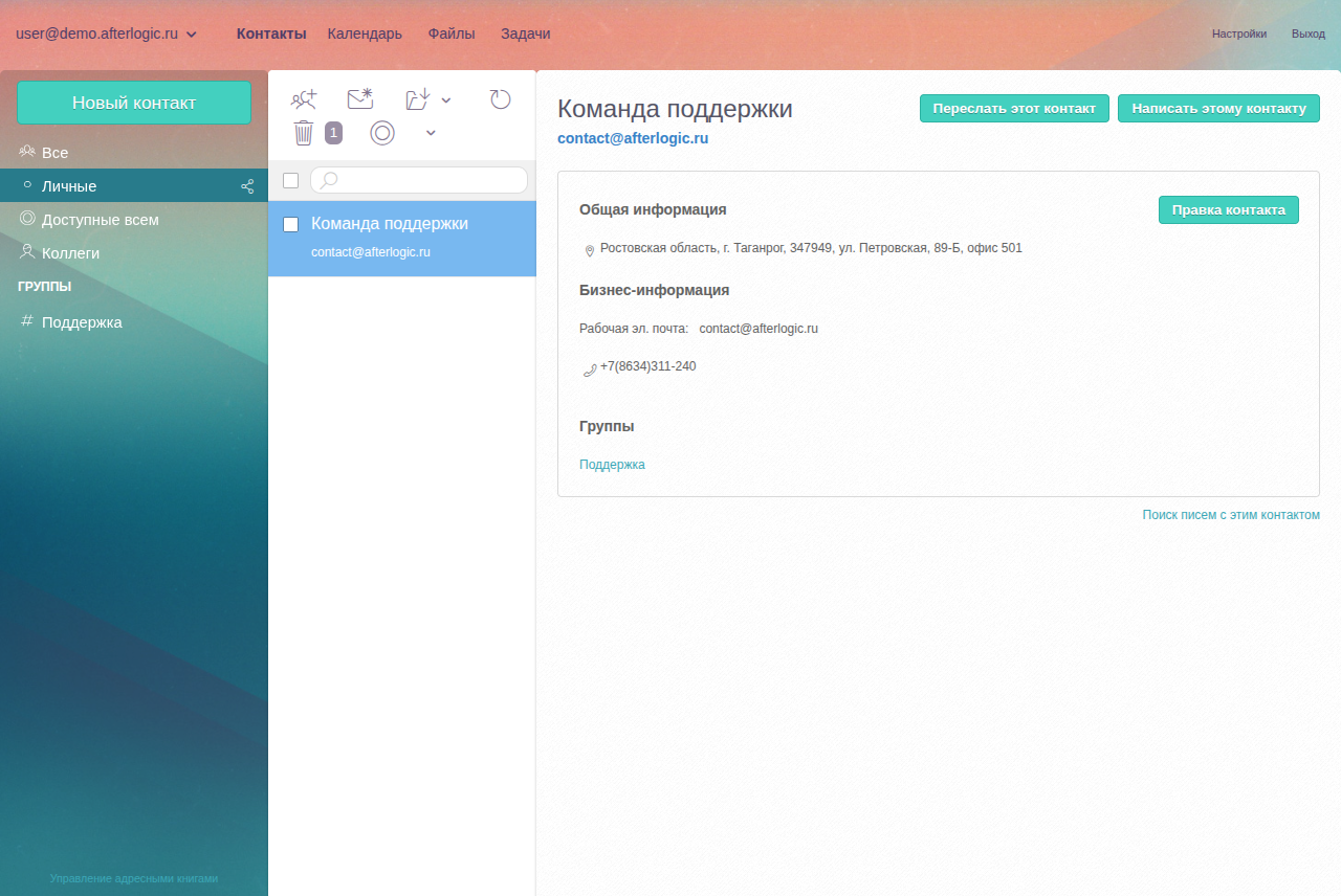 Организуйте общий доступ к контактам, календарям, файлам и папкам между коллегами. Возможно совместное редактирование документов, с доступом к истории редактироавния.