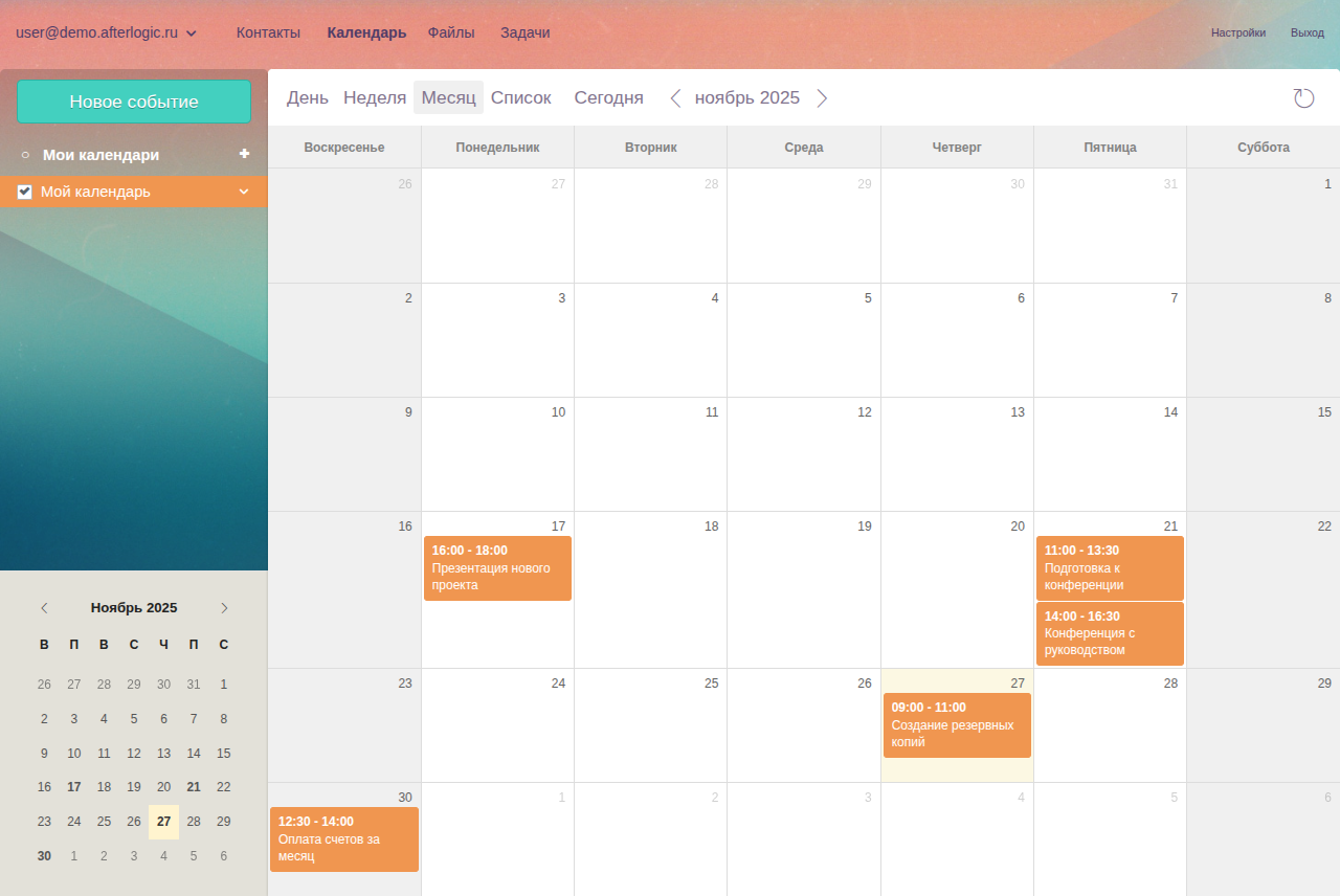 Контакты и календари можно синхронизировать по протоколу DAV (нативно поддерживается в устройствах Apple, доступен с использованием сторонних клиентов на других платформах).